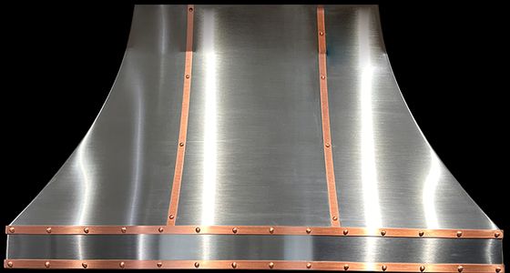 Metals & Strapping: Change your hood material from stainless steel to 14 different custom metals options including brass and copper. Plus, enhance your ventilation hood design by adding custom strapping and rivets to compliment other finishes in your kitchen.