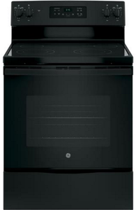 GE® 30" Black Free Standing Electric Range with 5.3 cu. ft. total capacity, self clean oven and ceramic glass cook topRead More
