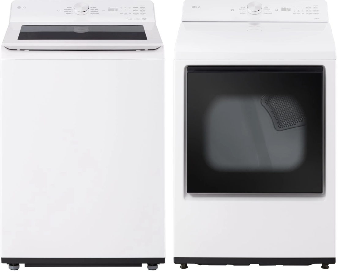 LG 4.8 Cu. Ft. Alpine White Agitator Top Load Washer with EasyUnload™ & AI Sensing and LG 7.3 Cu. Ft. Alpine White Front Load Electric DryerRead More