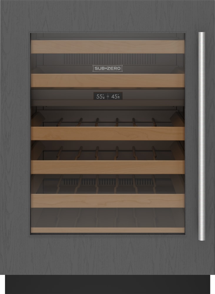 The 24" designer undercounter wine storage features a fully customizable exterior, accepting custom panels for an integrated look within cabinetry or stainless steel accessory panels and handles to coordinate other Sub-Zero, Wolf, and Cove appliances. *CUSTOM PANEL & HANDLE SOLD SEPARATELY*Read More